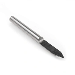 Применяется для нанесения гравировки и чистовой обработки трехмерного рельефа. Конструкция гравера: конусная рабочая часть имеет одну кромку и плоскую, которая при вращении формирует плоскость. Применение: гравировка, изготовление клише — медь, алюминий, сталь, нержавеющая сталь. Диаметр площадки 0.4мм; угол рабочей части 30°; диаметр хвостовика 3.175мм; общая длина 38мм.