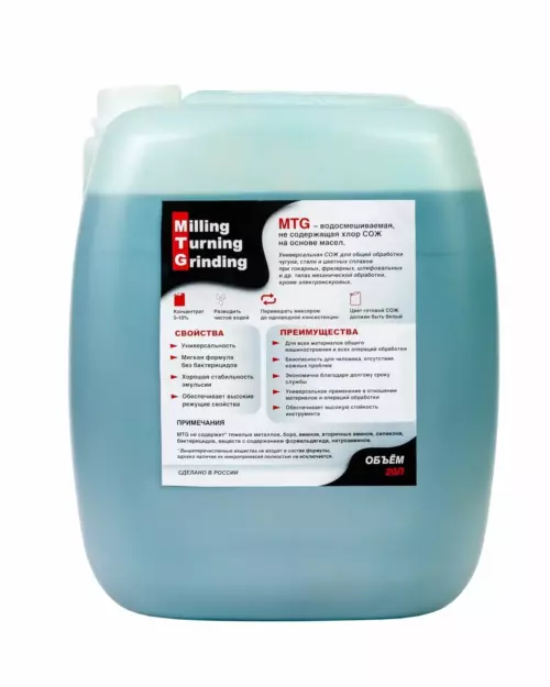 Многоцелевая СОЖ, представляющая собой водорастворимую эмульсию, приготавливаемую путем добавления 5-10% концентрата в воду. Применяется при механической обработке и шлифовании.